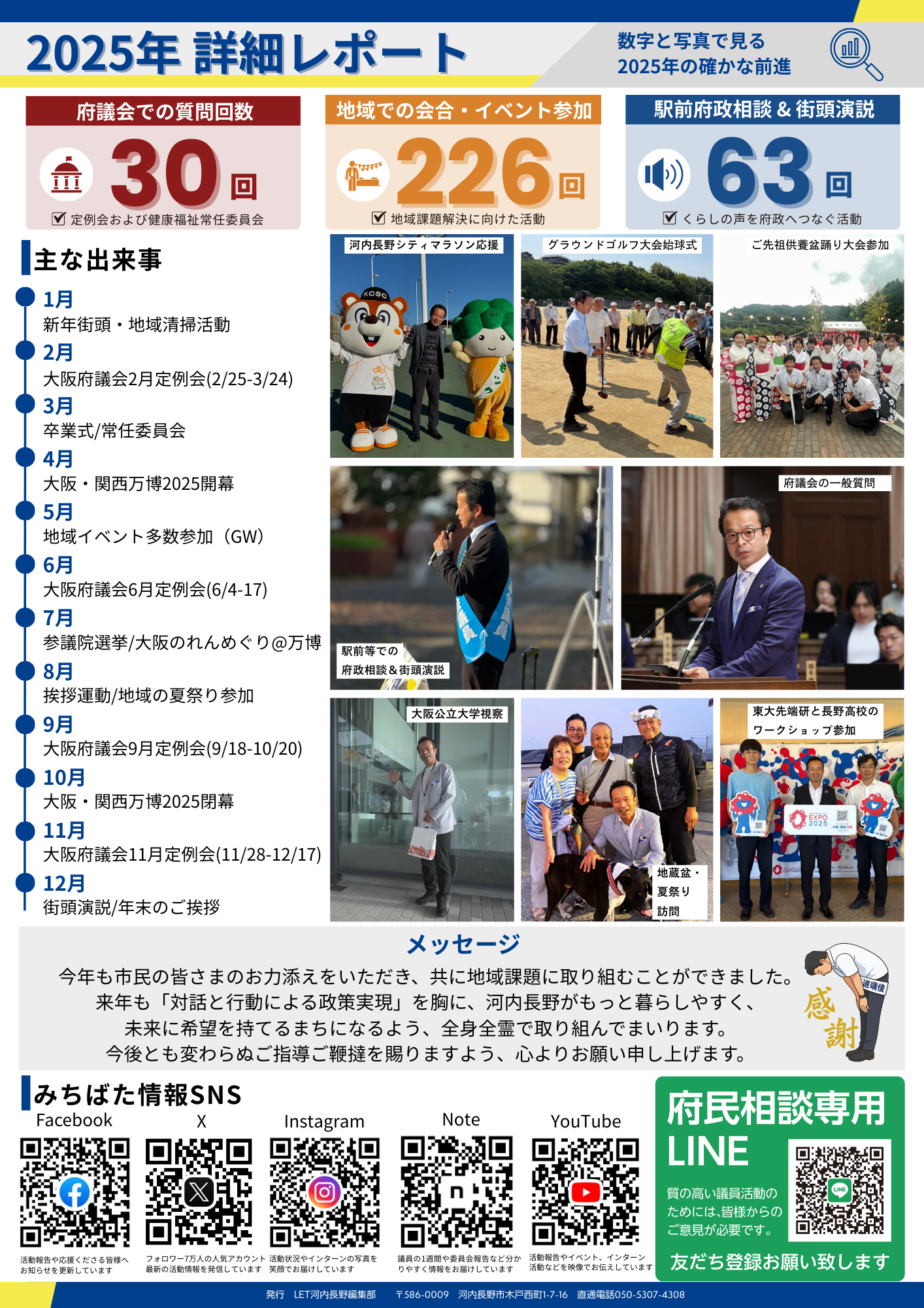 ◉府政報告/活動報告「LETかわちながの」バックナンバー